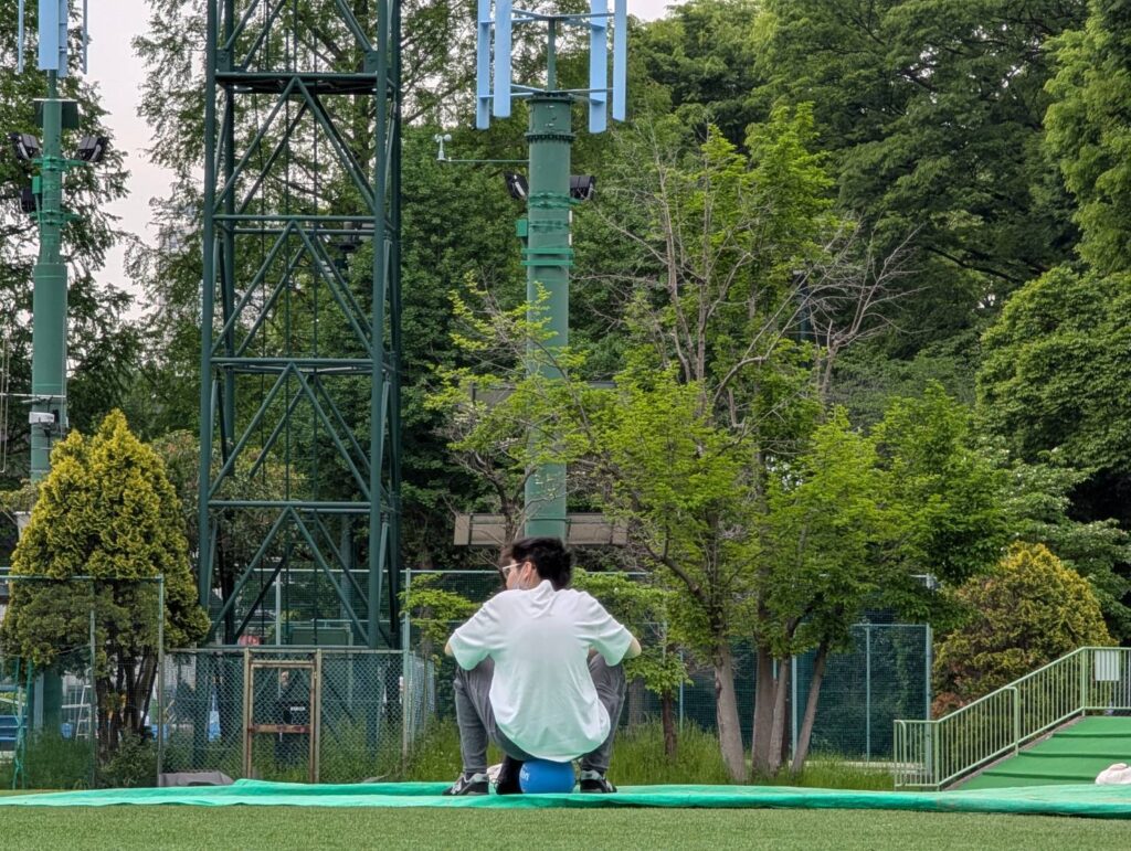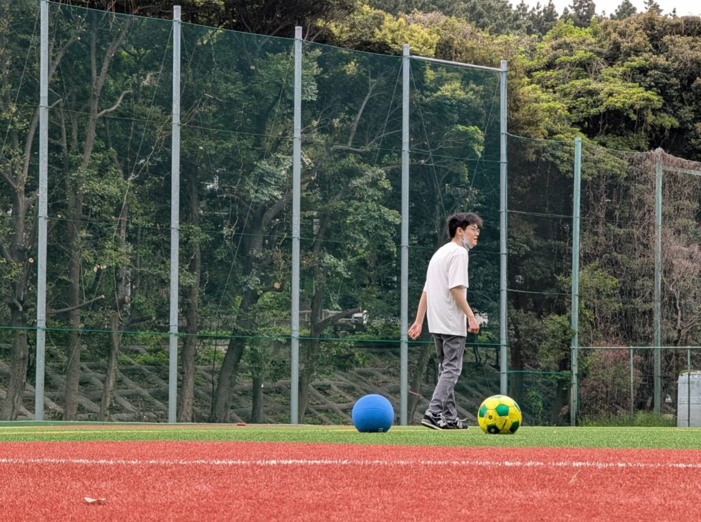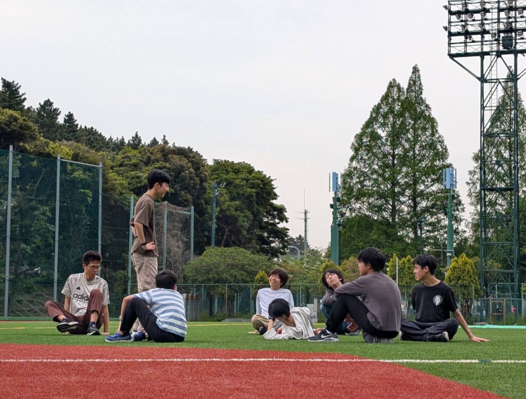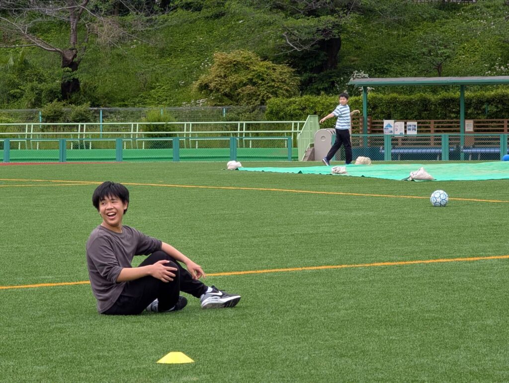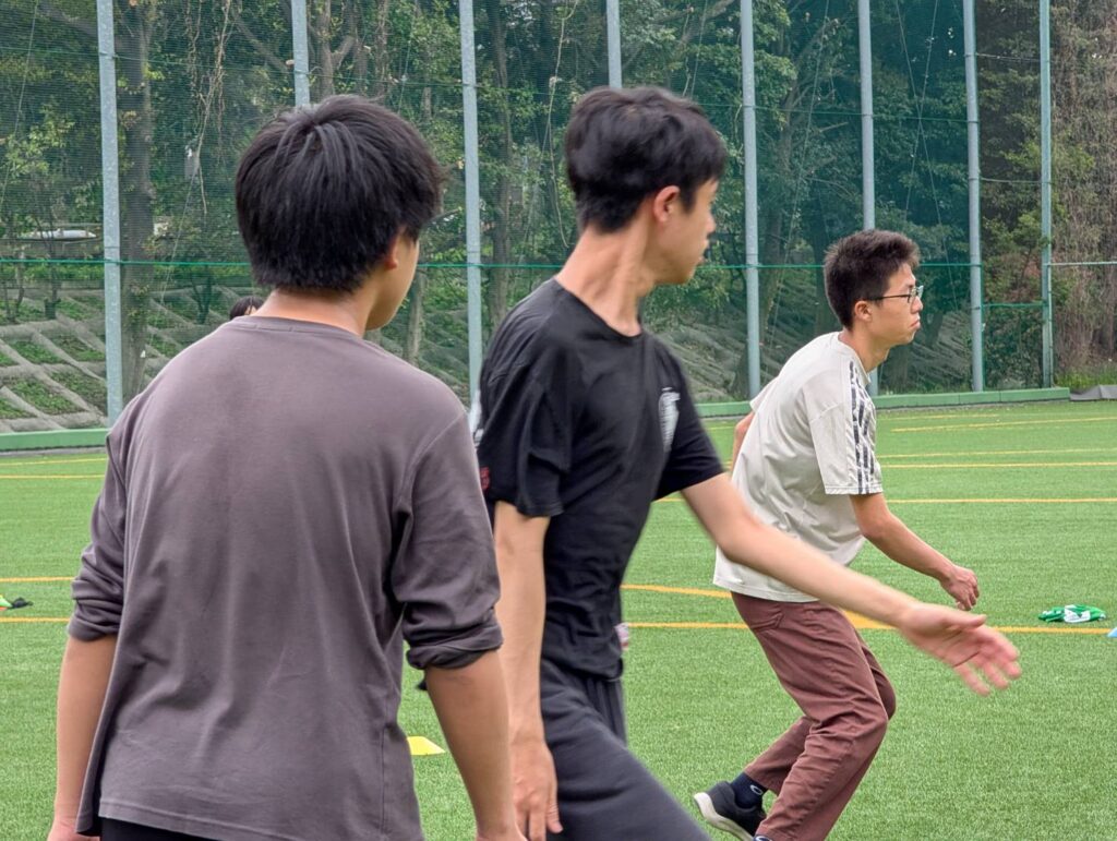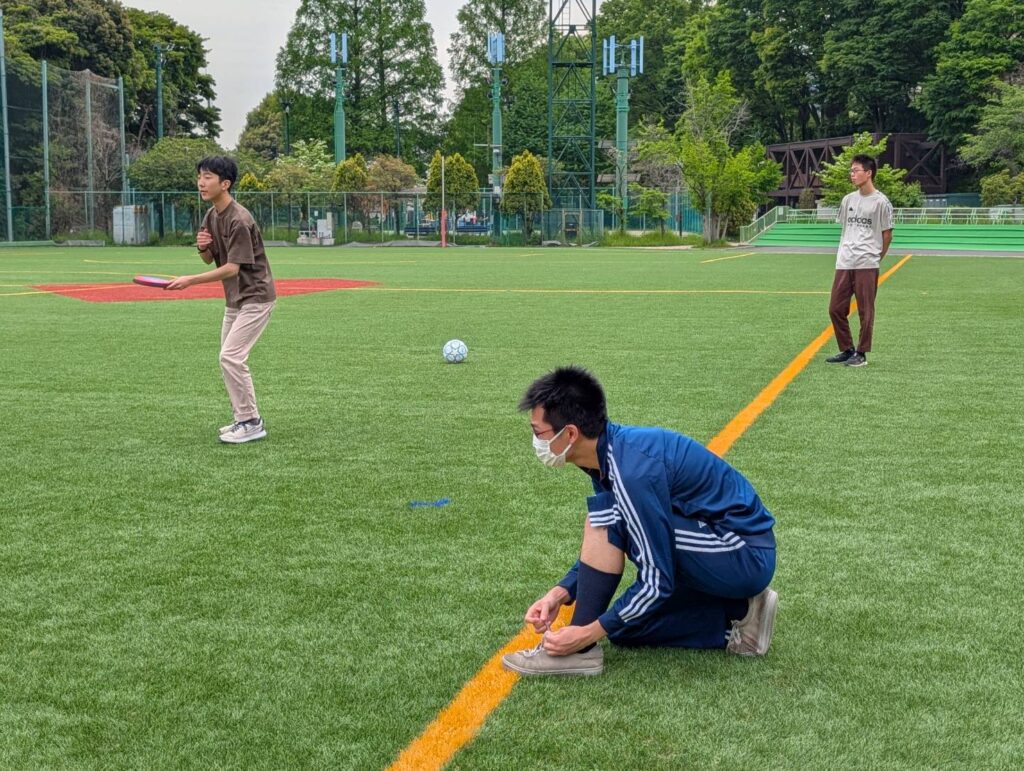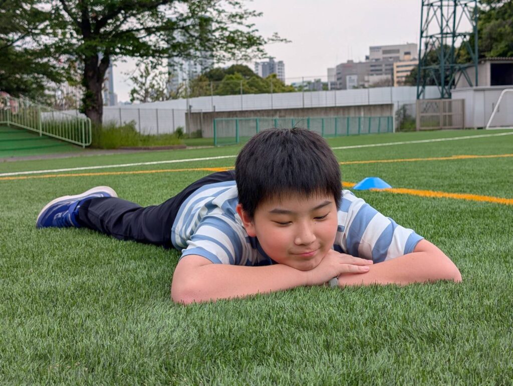 ドッヂボールの後はこの広いグラウンドを使って鬼ごっこをしていました。