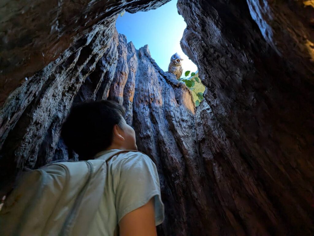 謎の大木の中にはフクロウが居て、「ちょっとびっくりした」と言っていました。