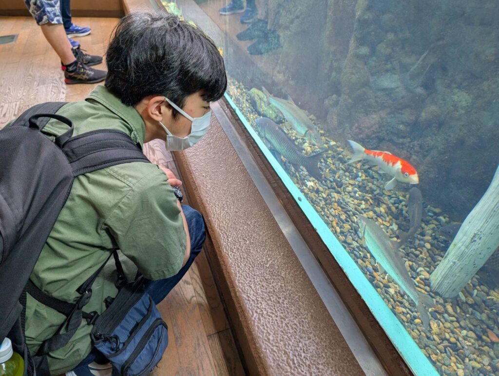 恐らく一番大きな水槽には、本当にたくさんの生き物が居て、お互いに「あれが居る、これが居る」と話を弾ませていました。