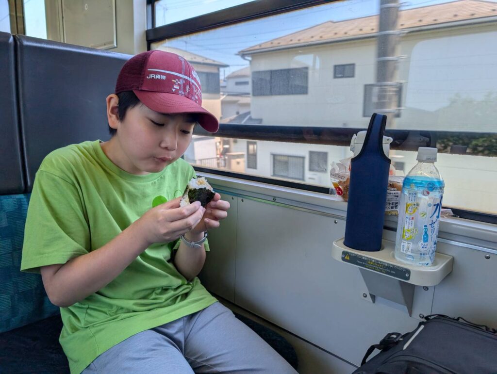 ここからは先頭車両のボックス席に座り、ちょっと早めのお昼ごはんです。