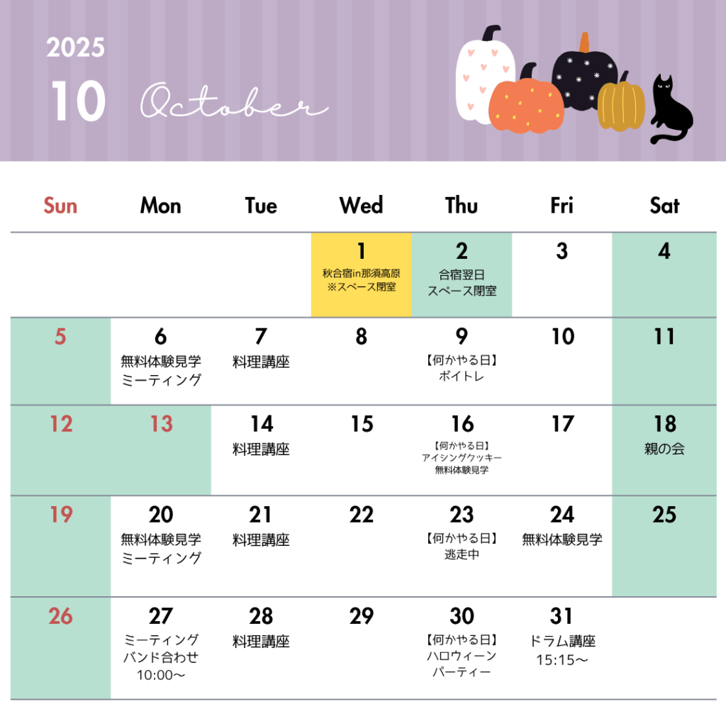 10月は講師の方をお呼びして、アイシングクッキー作りをしたり、30日にはハロウィーンパーティーも行われます。