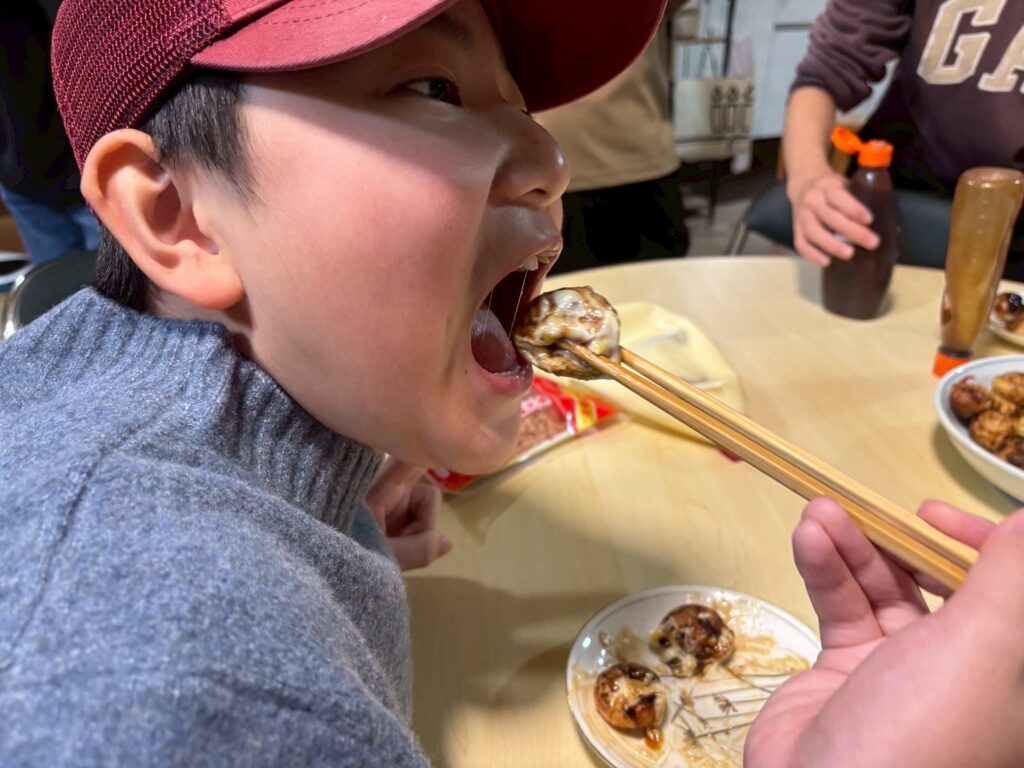 タコ以外にも、ベーコンやウインナー、チーズも具材に入れていたので、みんな美味しく食べていました。