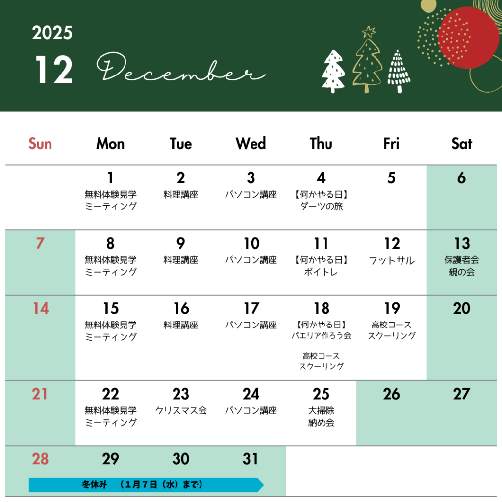 また、冬休み前には恒例のクリスマス会も!